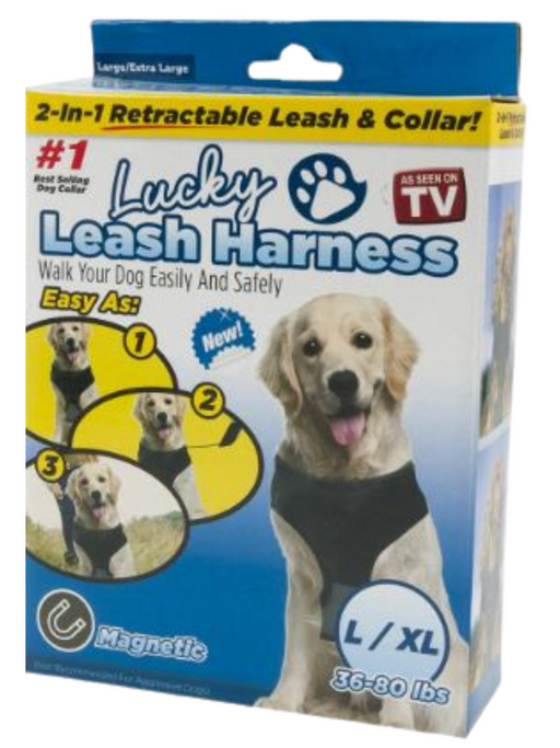 Lucky Leash- 2-n-1 Retractable Leash & Harness Magnetic Collar, Telescopic Cord - L/XL