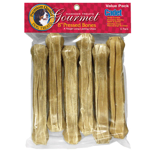 Pressed Rawhide Bones 8 inches 6 pack